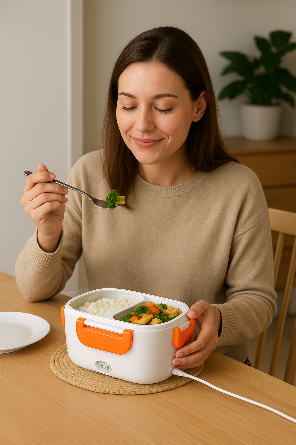 ✅ Calienta tus comidas en minutos (220V hogar / 12V auto).